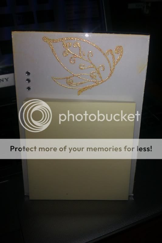 This was kinda hard to photograph but it is a stand to hold sticky notes. Gotta hide from my kids, they love to take my sticky notes and make those moving picture books, flip books I think they r called..lol